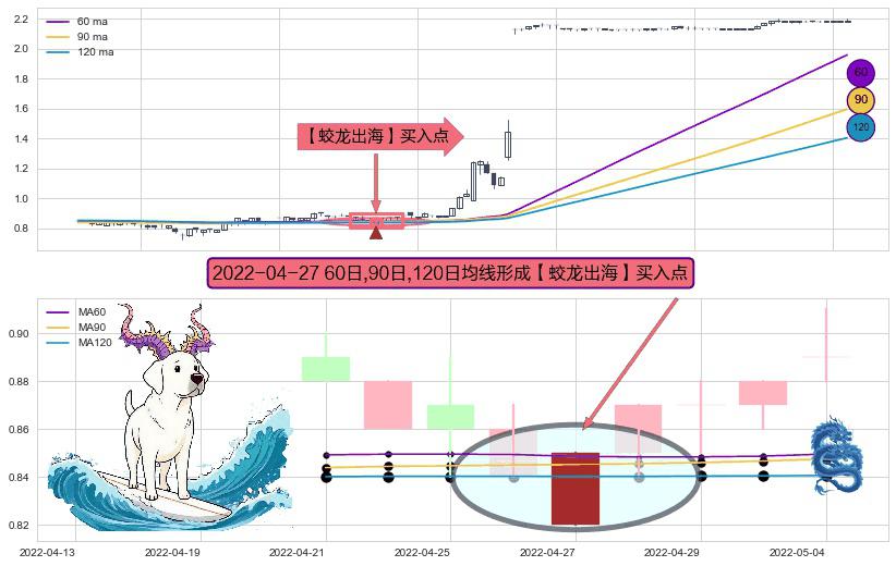 形态多维评估: ⚀ 2022-04-27日显现 60日-90日-120日均线 【蛟龙出海】买入点 看多信号,后市看涨,买入