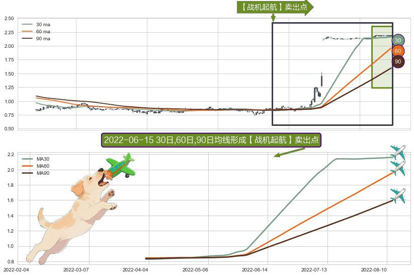 形态多维评估: ⚀ 2022-04-01日-2022-08-12日显现 30日-60日-90日均线 【战机起航】卖出点 看空信号,后市看跌,卖出