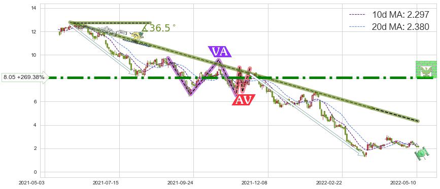 ♘ 阻力价格位8.05,可信任强度93.78%,距离最后交易2022-05-11形成的收盘价格2.180相差 +269.38%