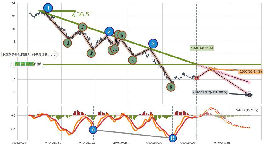 ➢ 预测:2022-06-08,【小幅反弹】稳定目前下跌趋势的前提下,预测价格:3.602