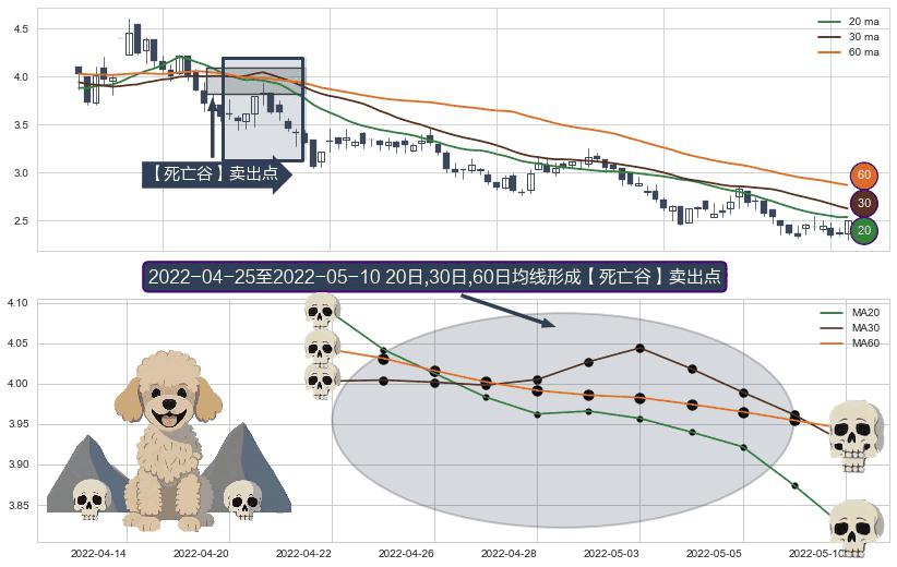 ⚀ 2022-04-26-日至2022-05-10-日显现 20日-30日-60日均线 【死亡谷】卖出点 看空信号,后市看跌,卖出