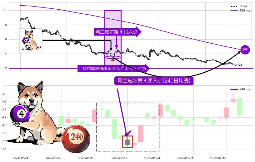 ⚀ 2022-01-17-日显现 葛兰威尔均线 240日均线 第④买入点 下降趋势均值回复的短线反弹信号,后市看涨,买进信号