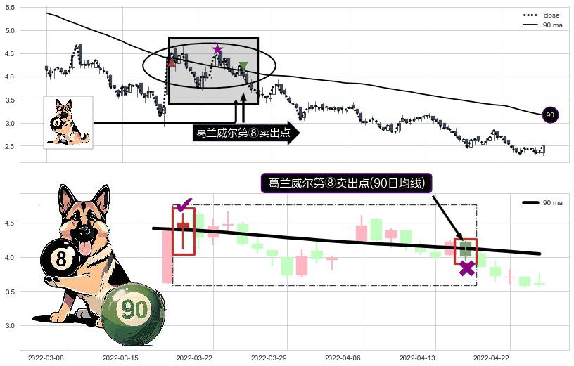 ⚀ 2022-04-19-日显现 葛兰威尔均线 90日均线 第⑧卖出点 下降趋势的中继信号,后市看跌,卖出信号