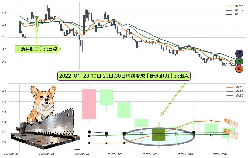 ⚀ 2022-01-28日显现 10日-20日-30日均线 【断头铡刀】卖出点 看空信号,后市看跌,卖出