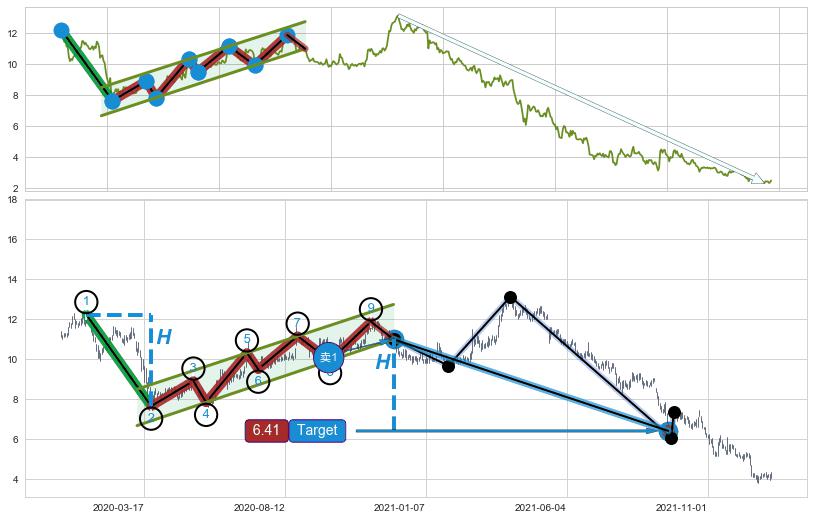 ➣ 最小中继整理跌幅→𝐇: 4.59 (𝐇旗杆的长度:旗杆起点→顶点)
