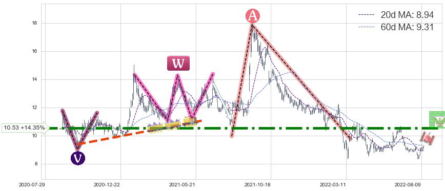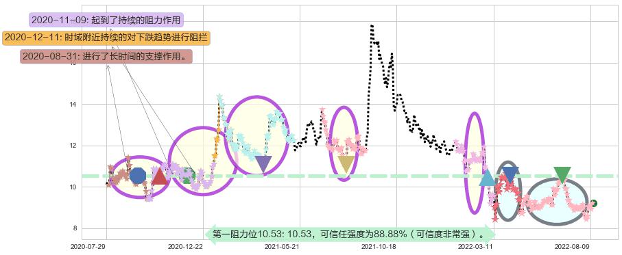 ♘ 阻力价格位10.53,可信任强度88.88%,距离最后交易2022-08-12形成的收盘价格9.21相差 +14.35%