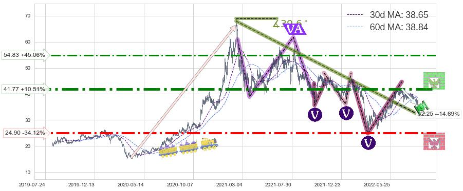♘ 阻力价格位41.77,可信任强度90.09%,距离最后交易2022-08-12形成的收盘价格37.80相差 +10.51%