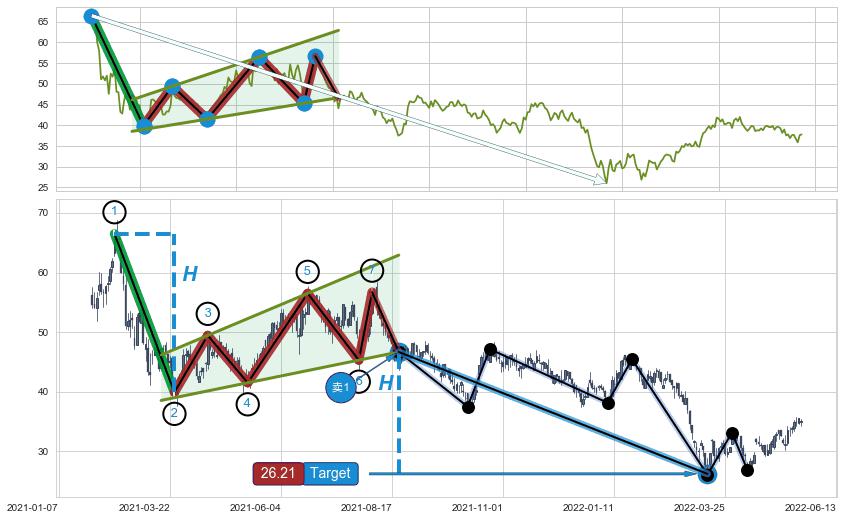 ➣ 最小中继整理跌幅→𝐇: 26.60 (𝐇旗杆的长度:旗杆起点→顶点)