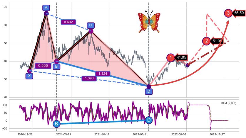 ➢ 已完成【蝴蝶】形态起点X: 2020-12-09, 终点D: 2022-03-15, 共312交易日