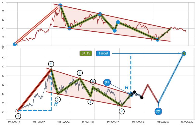 ➢ AI预测: 假定反转继续,第❸价格目标位置(2023-01-09, 66.50)