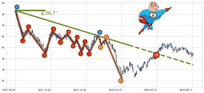 ⚔️ 2021-08-05-2022-03-29下跌趋势存在反转上涨[机会],其原下跌趋势的阻力位(32.19)已被突破[强支撑信号],原下跌趋势角度: 36.7˚