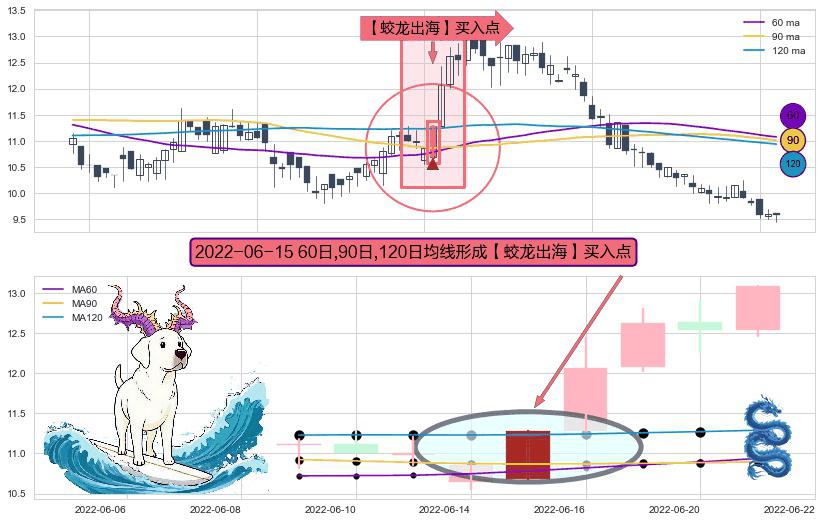 形态多维评估: ⚀ 2022-06-15日显现 60日-90日-120日均线 【蛟龙出海】买入点 看多信号,后市看涨,买入