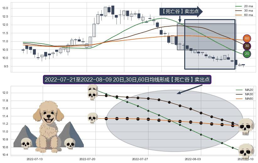 形态多维评估: ⚀ 2022-07-22-日至2022-08-09-日显现 20日-30日-60日均线 【死亡谷】卖出点 看空信号,后市看跌,卖出
