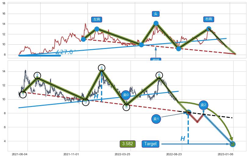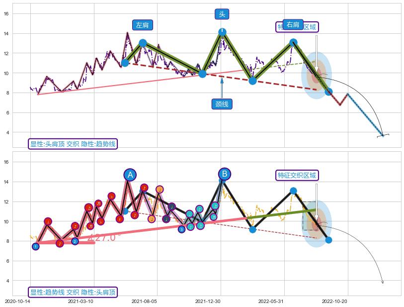 ➣ 【未确认突破,预测即将形成突破】头肩顶起点:2021-05-13, 预测突破点:2022-09-08,形态共328交易日
