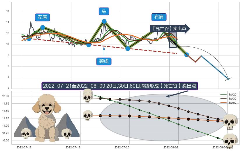 | 3 🅚:【绝命跳】卖出点 ➕ 📐:头肩顶猜想突破点临近,临近关键支撑位,预期下沉突破下跌 ☞ 看空信号 ⇥ 【均线】交织【图形】⇥ 综合量化分数: 12 | > |