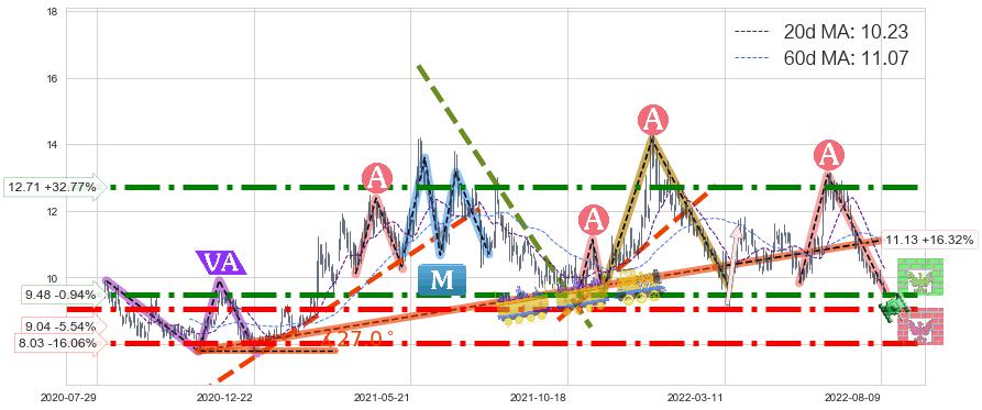 ♘ 阻力价格位12.71,可信任强度97.11%,距离最后交易2022-08-12形成的收盘价格9.57相差 +32.77%