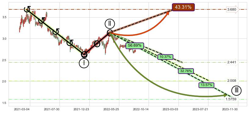 ➢ 循环浪继续向下【最高】位置(2023-03-22, 2.441),匹配聚类样本比例18.28%, 可能性概率10.37%
