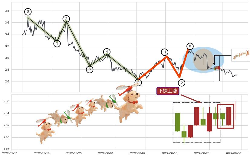 ➢ 收盘价(2022-06-01: 2.850 )→回踩→第二根k线高点(2022-05-30: 2.820 )