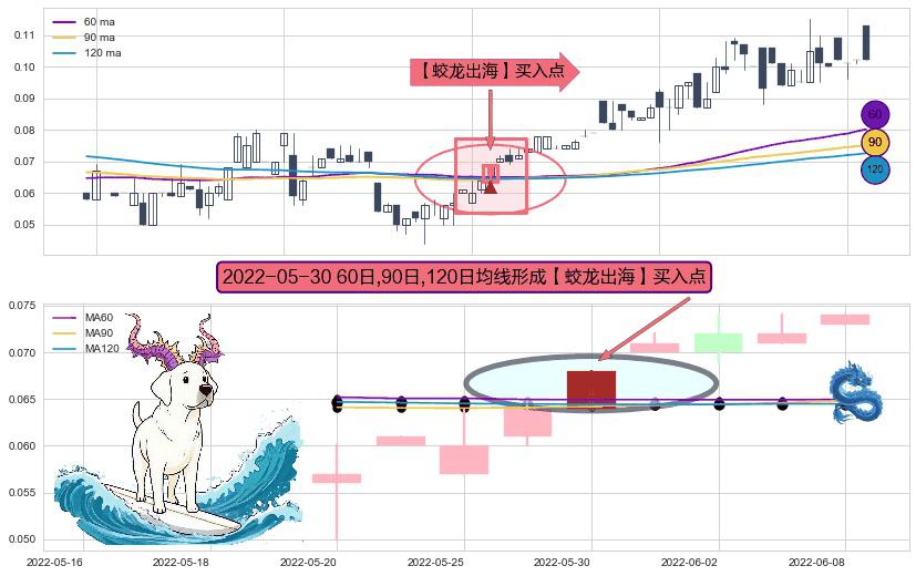⚀ 2022-05-30日显现 60日-90日-120日均线 【蛟龙出海】买入点 看多信号,后市看涨,买入