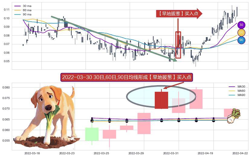 ⚀ 2022-03-30日显现 30日-60日-90日均线 【旱地拔葱】买入点 看多信号,后市看涨,买入