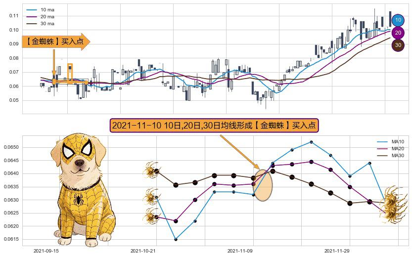 ⚀ 2021-11-10日显现 10日-20日-30日均线 【金蜘蛛】买入点 看多信号,后市看涨,买入