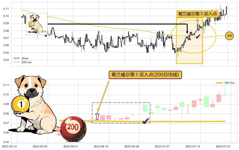 ⚀ 2022-06-08-日显现 葛兰威尔均线 200日均线 第买①入点 走势反转见底信号,后市看涨,买进信号