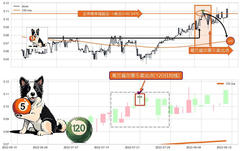 ⚀ 2022-07-21-日显现 葛兰威尔均线 120日均线 第⑤卖出点 上升趋势均值回复的短线回落信号,后市看跌,卖出信号