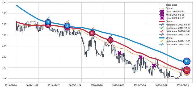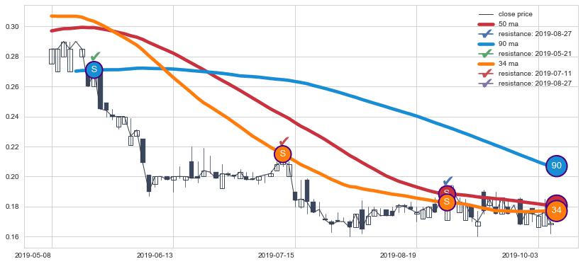 ⚁ MA60和MA90走势平行,且始终保持在短距离内,MA120始终在短中期均线上方,与短中期均线保持一定的距离,微微下行