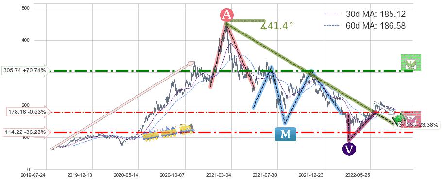♘ 阻力价格位305.74,可信任强度76.00%,距离最后交易2022-08-12形成的收盘价格179.10相差 +70.71%