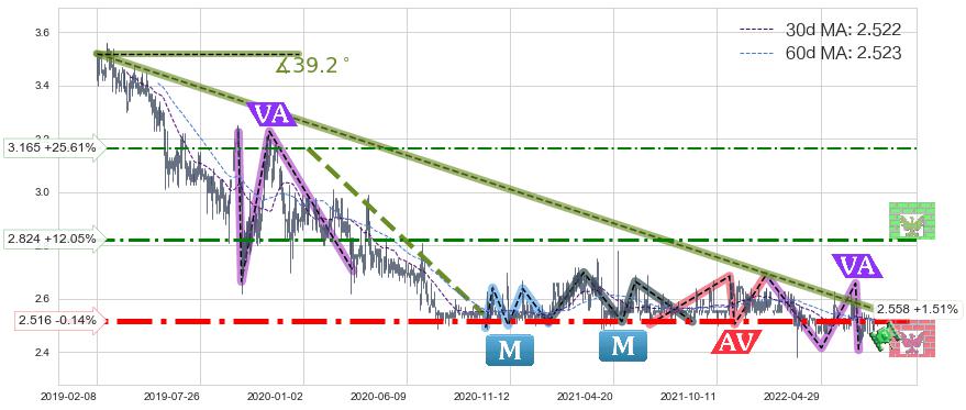 ♞ 30日均线:2.522,60日均线:2.523→ 快线<慢线