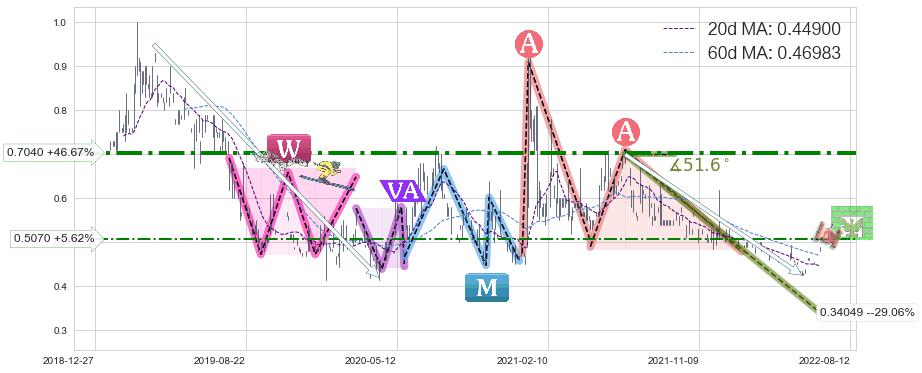 ♘ 阻力价格位0.5070,可信任强度53.99%,距离最后交易2022-08-12形成的收盘价格0.48000相差 +5.62%