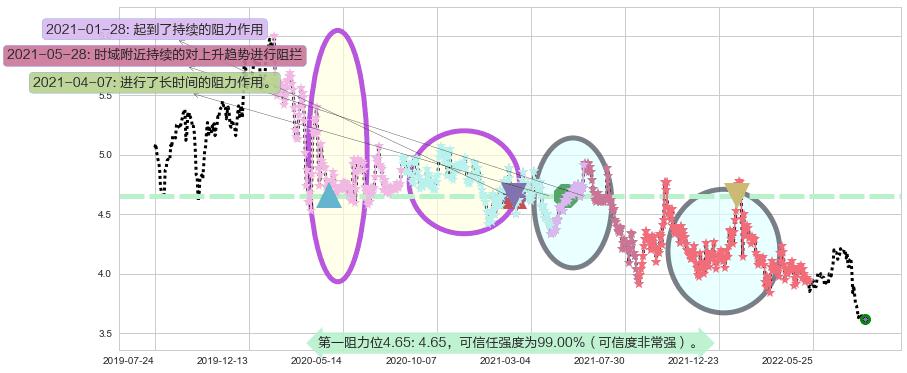 ♞ 第一阻力位4.65价格为4.65,其通过量化计算出的可信任强度为99.00%(可信度非常强)。