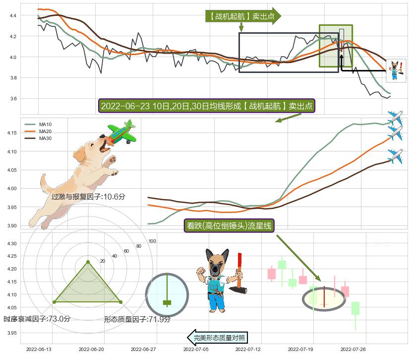 | 3 🅚:下跌两颗星 | 下跌三颗星 ➕ 🎢:【战机起航】卖出点均线组合卖出点信号形成后,猜想后续上行结束,持续回落下跌(均值回复) ☞ 看空信号 ⇥ 【均线】交织【🅚线】⇥ 综合量化分数: 49 | > |