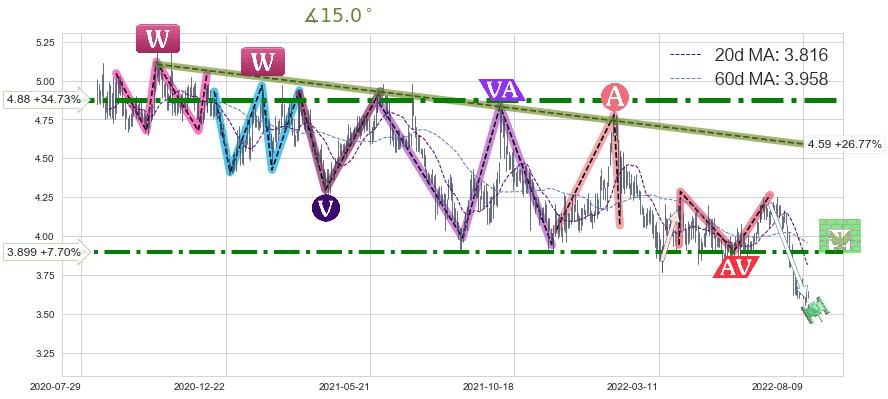 ♘ 阻力价格位3.899,可信任强度78.10%,距离最后交易2022-08-12形成的收盘价格3.620相差 +7.70%