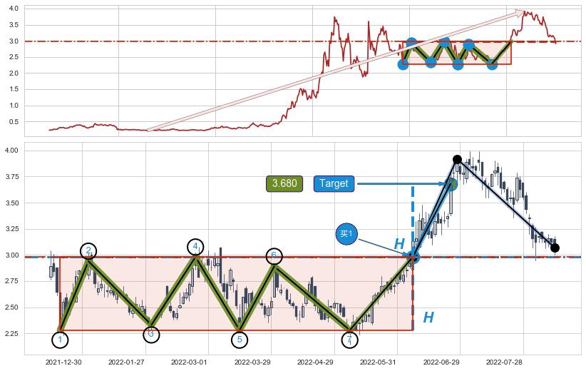 ➢ 【买1】: 激进型 买点 →(2022-06-08: 2.980 )形成突破上涨矩形整理【整理】形态