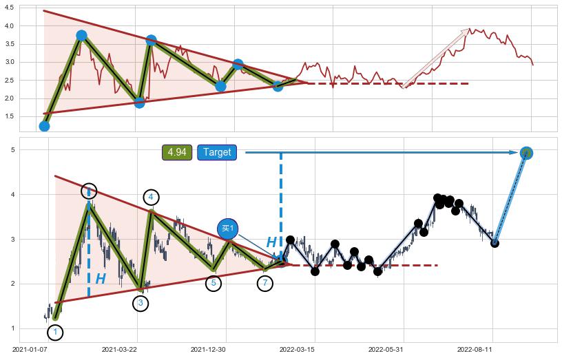 ➣ AI预测: 假定反转启动后, 第❶目标位置(2022-09-07, 3.256)