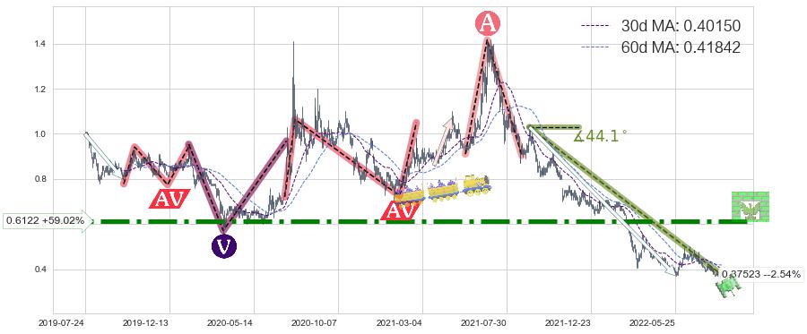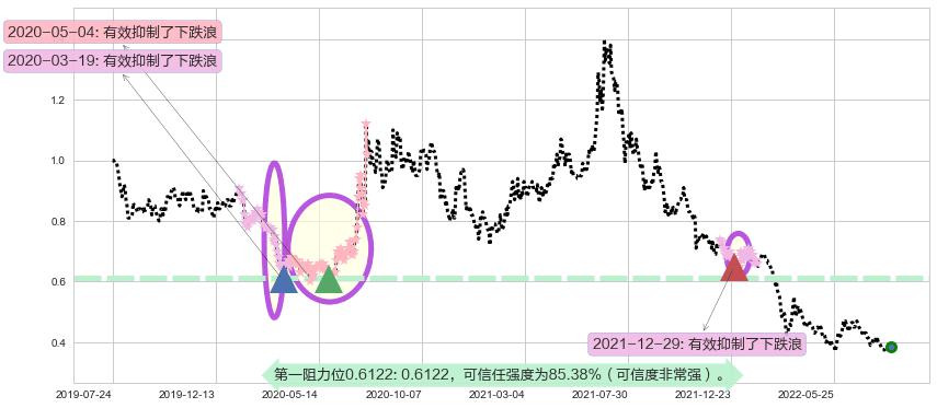 ♘ 阻力价格位0.6122,可信任强度85.38%,距离最后交易2022-08-12形成的收盘价格0.38500相差 +59.02%