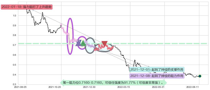 ♘ 阻力价格位0.7160,可信任强度91.77%,距离最后交易2022-08-12形成的收盘价格0.38500相差 +85.97%