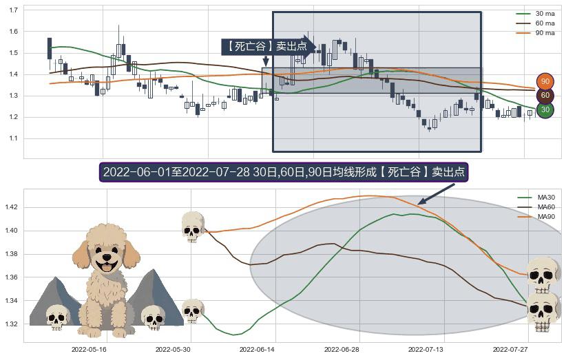 ⚀ 2022-06-02-日至2022-07-28-日显现 30日-60日-90日均线 【死亡谷】卖出点 看空信号,后市看跌,卖出