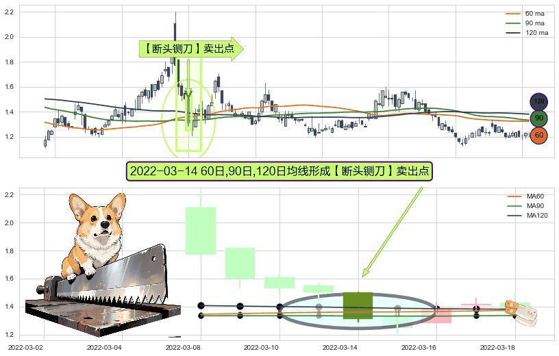 ⚀ 2022-03-14日显现 60日-90日-120日均线 【断头铡刀】卖出点 看空信号,后市看跌,卖出