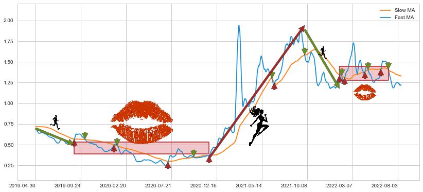 2021-09-29至2022-01-20 慢线与快线呈空头排列, 慢线与快线接触少,无缠绕