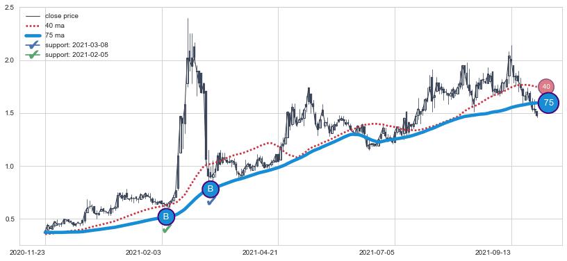 ⚅ 短期均线MA8上穿中期均线MA21形成的交叉是普通交叉并非 黄金交叉