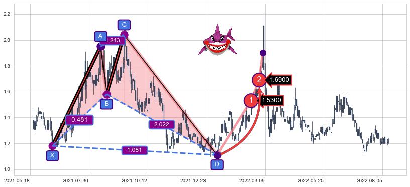 ➣ 已完成【鲨鱼】形态起点X: 2021-06-16, 终点D: 2022-01-06, 共141交易日