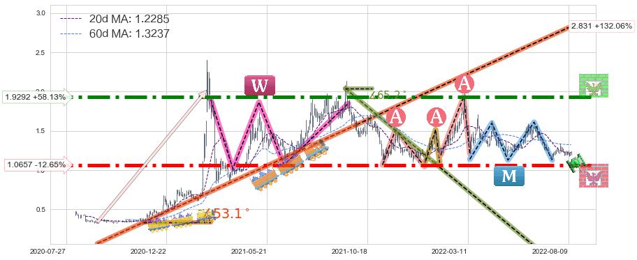 ➣ D点拟合预测价格0.8235,距离最后交易收盘价格1.2200相差 -32.50%