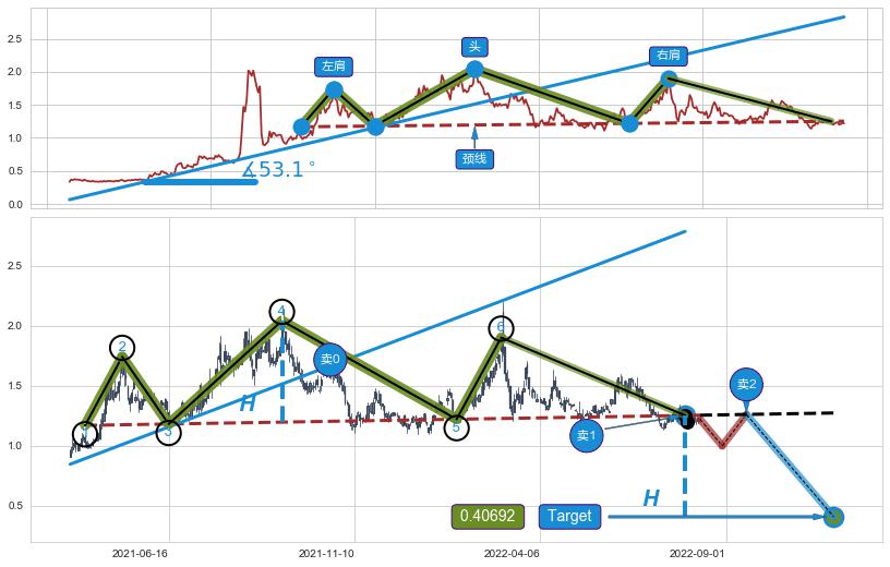 ➣ 最小反转跌幅→𝐇: 0.8444 (头部与颈线垂直距离)
