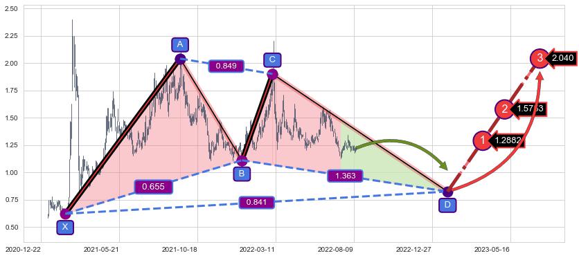 ➣ 未完成【伽利】形态起点X: 2021-02-05, 已到达C点: 2022-03-07, 预测最终D点: 2023-01-24, 共470交易日