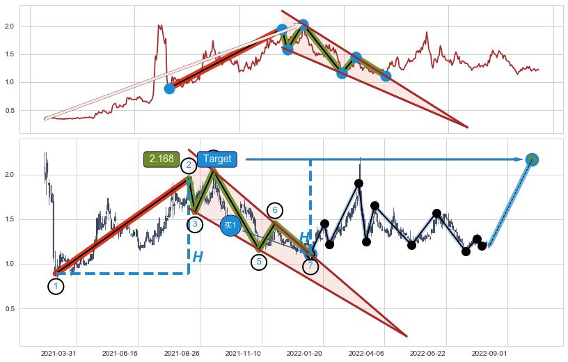 ➣ AI预测: 假定反转启动后, 第❸目标位置(2023-07-07, 2.040)
