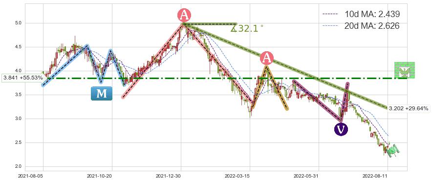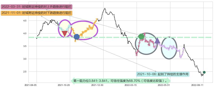 ♘ 阻力价格位3.841,可信任强度68.70%,距离最后交易2022-08-12形成的收盘价格2.470相差 +55.53%