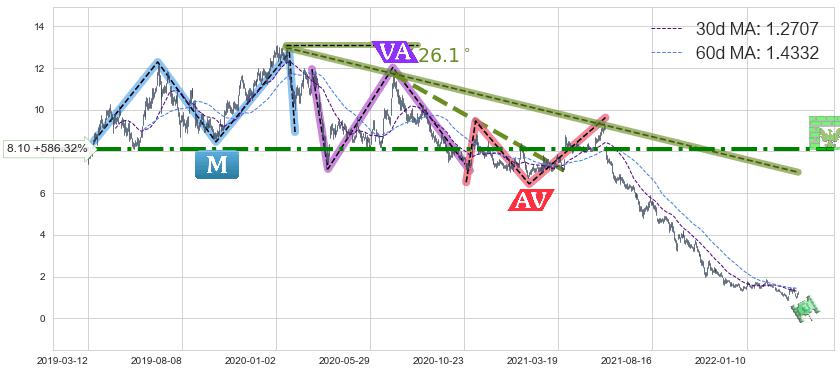 ♘ 阻力价格位8.10,可信任强度82.89%,距离最后交易2022-03-31形成的收盘价格1.1800相差 +586.32%
