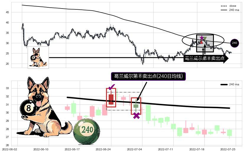 ⚀ 2022-06-30-日显现 葛兰威尔均线 240日均线 第⑧卖出点 下降趋势的中继信号,后市看跌,卖出信号
